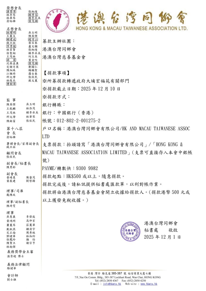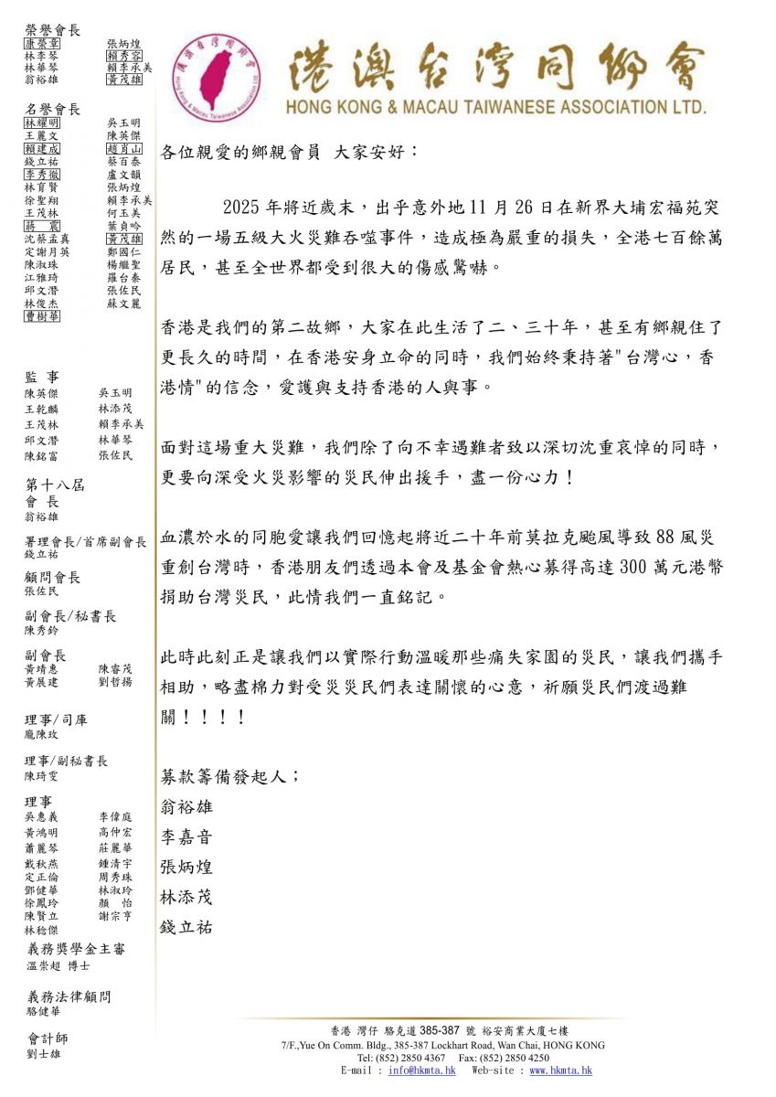 援助大埔宏福苑火災災民募款